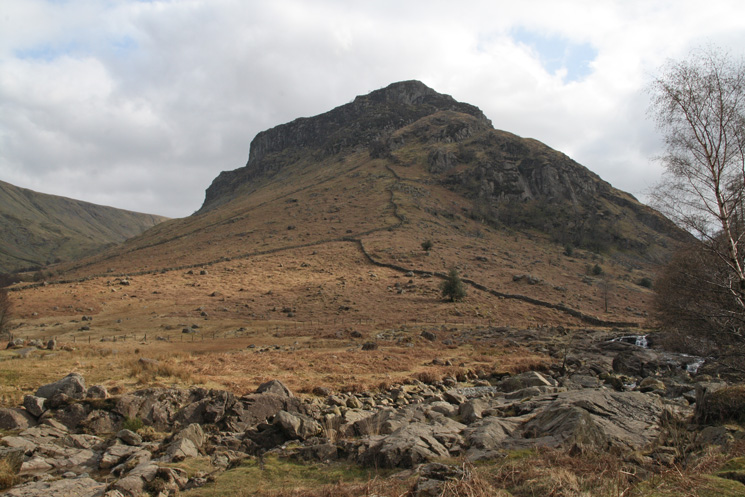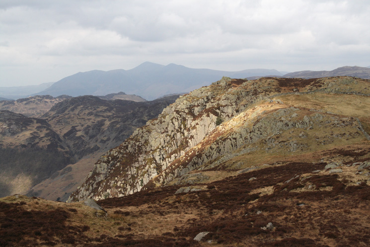 Brown Crag (left of centre) from our pathless descent route into Langstrath
