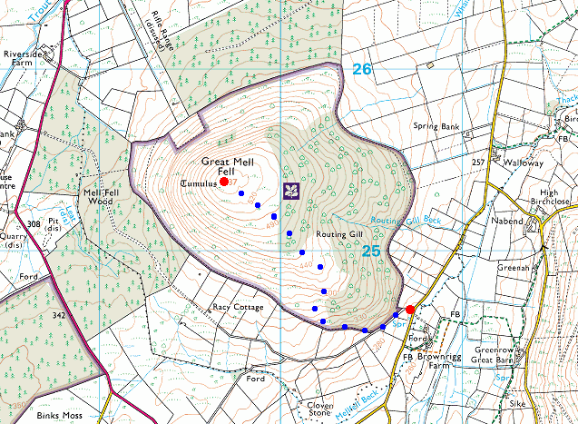 Route: Brownrigg Farm - Great Mell Fell - Brownrigg Farm