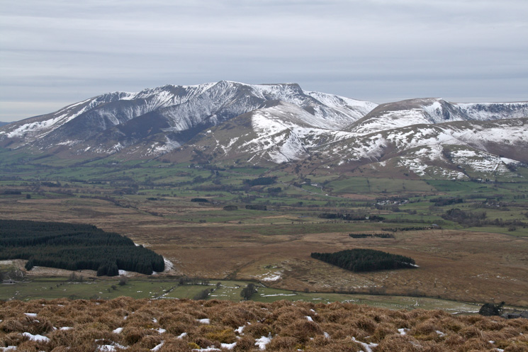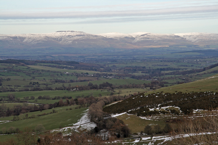 Looking across the Eden Valley to the North Pennines with Cross Fell left of centre from Great Mell Fell