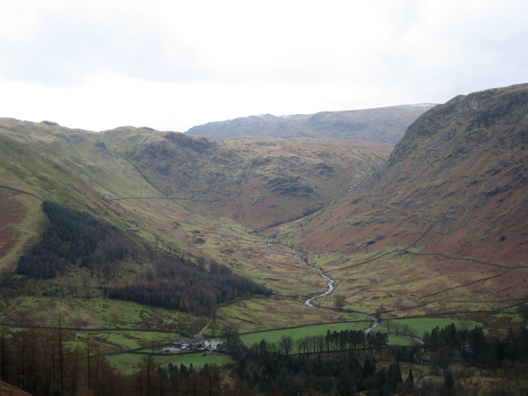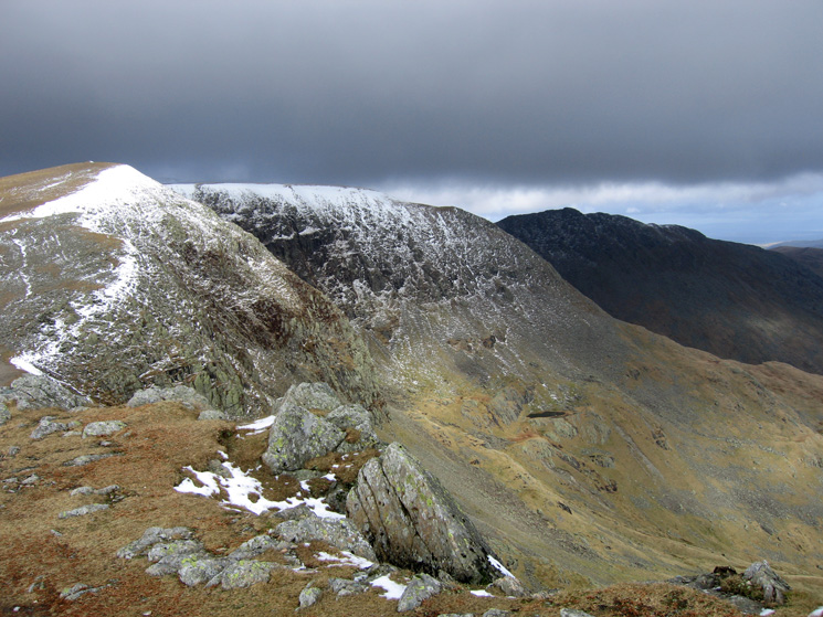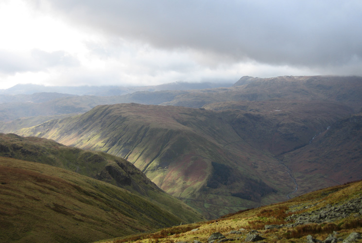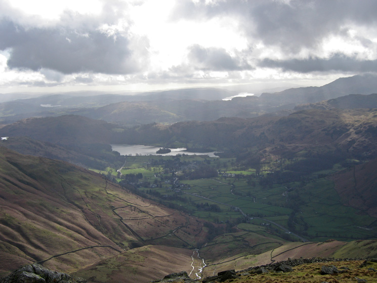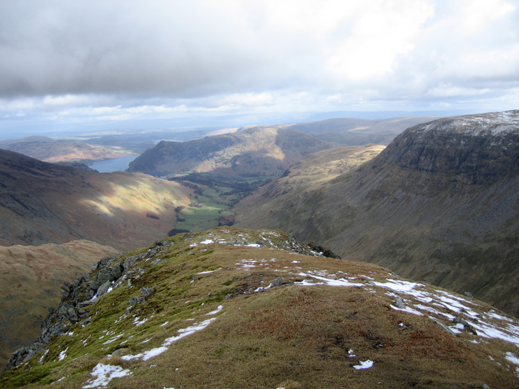 Looking down Grisedale to Place Fell with Saint Sunday Crag on the right from Dollywaggon Pike's summit