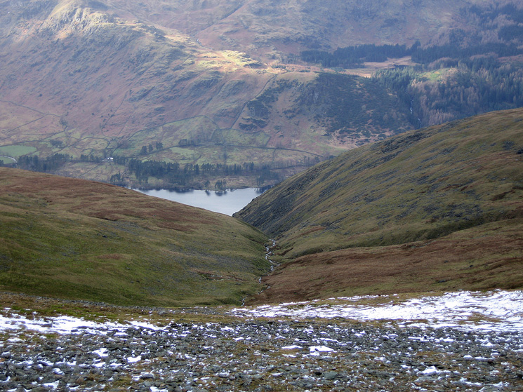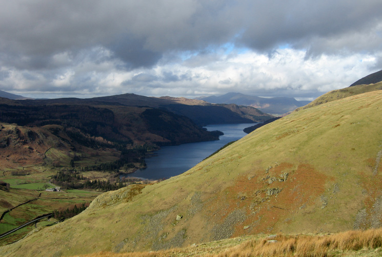 Thirlmere with Skiddaw in the far distance from our descent to Dunmail Raise from Seat Sandal