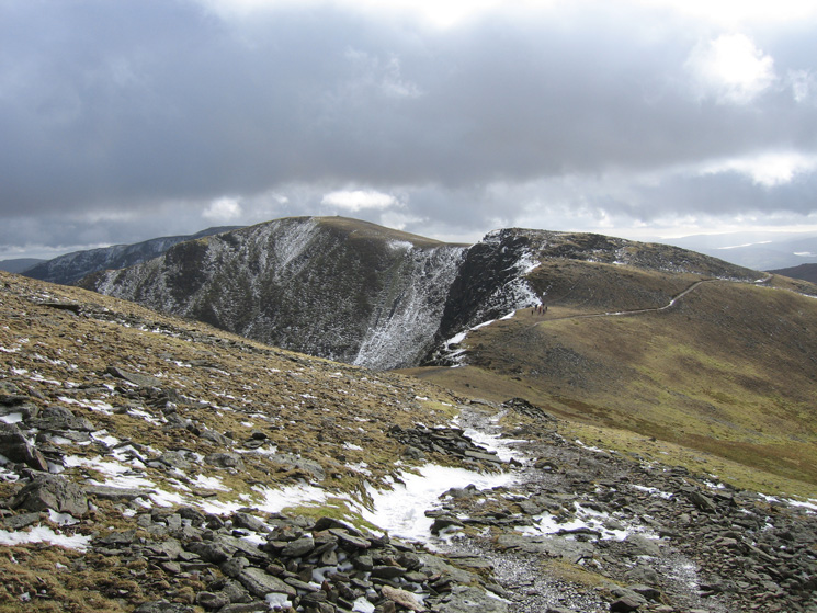 The path to Swallow Scarth and Nethermost Pike from Helvellyn's summit