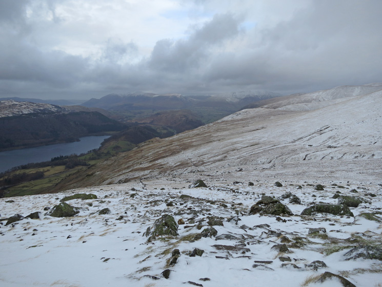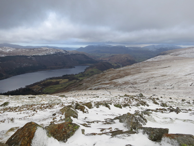 Thirlmere on the left with Skiddaw and Blencathra in the distance