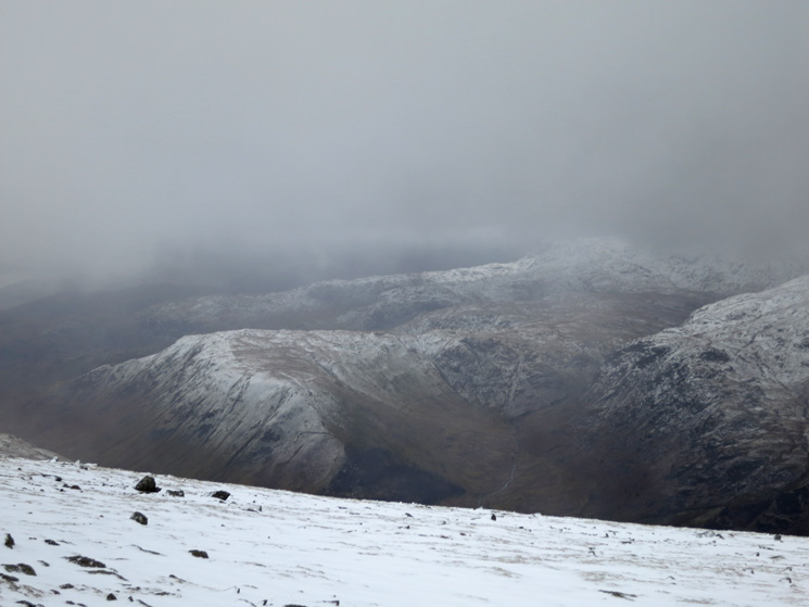 Wild, very very windy on the summit plateau. Forecast: Wind at 500m - 60 mph with gusts around 70mph close to the summits and over exposed ridges. Readings from Helvellyn summit at 11:45 by the fell top assessor: Temperature minus 1.6C, Wind chill minus 12.6C, Maximum wind speed 41.9mph, Average wind speed Westerly, 32.9mph