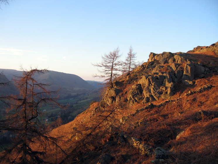 Evening light as we descend to Grasmere from Alcock Tarn