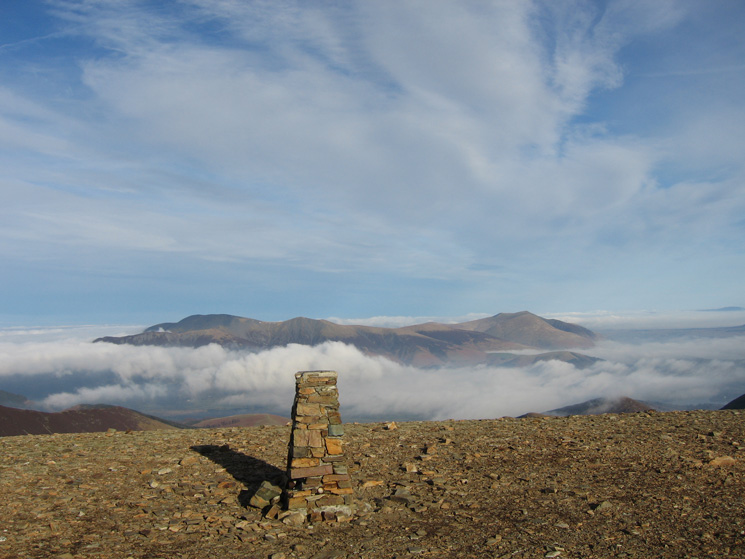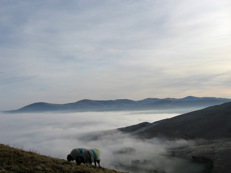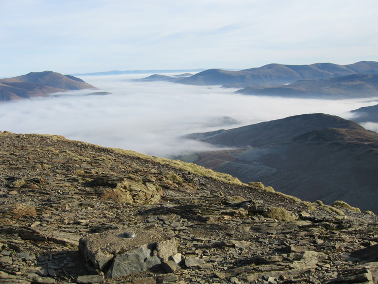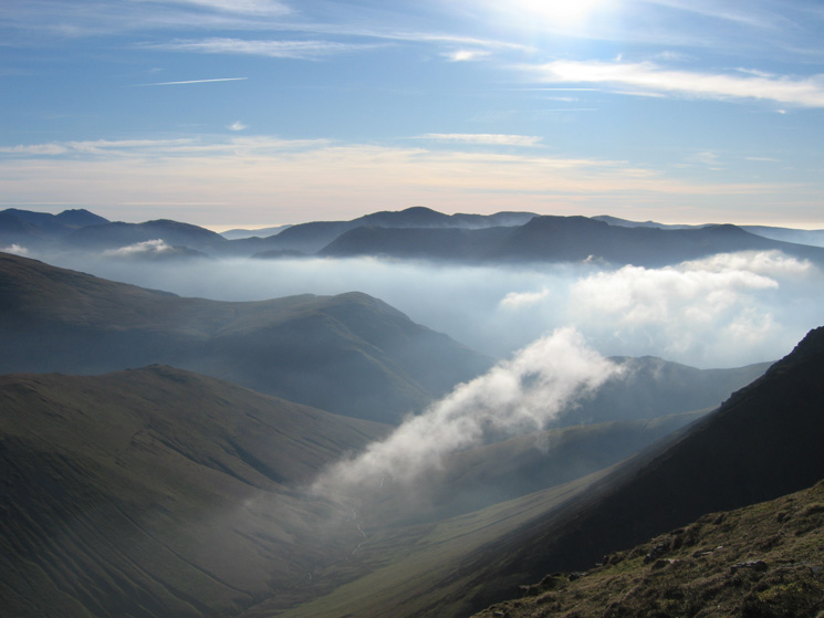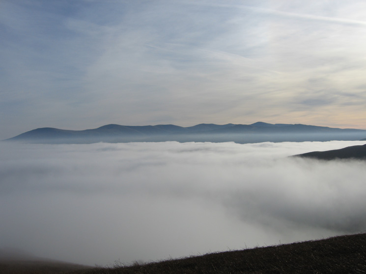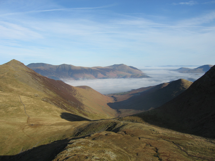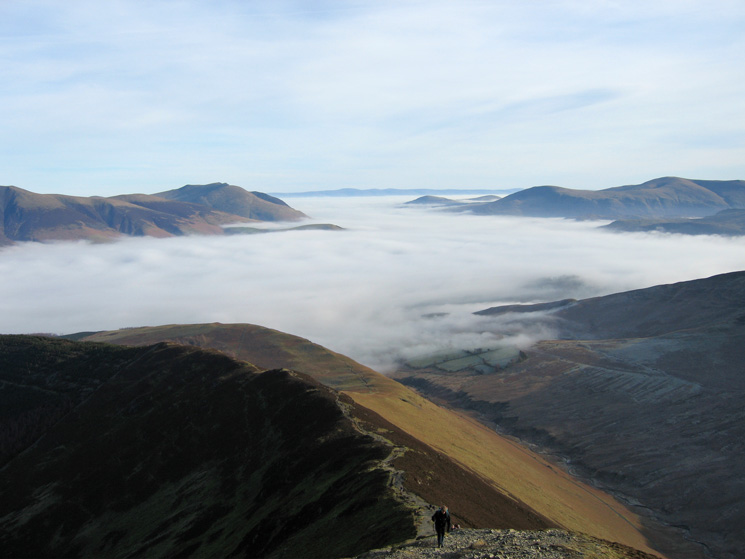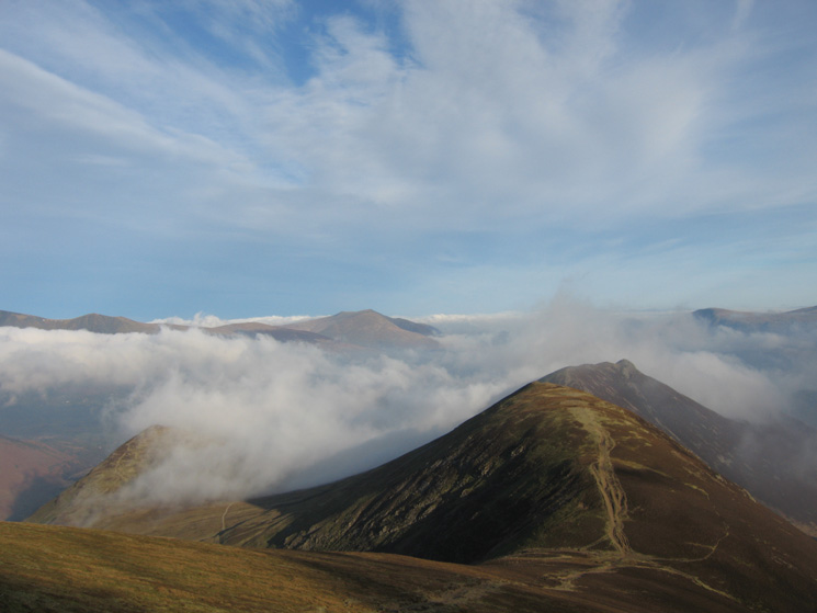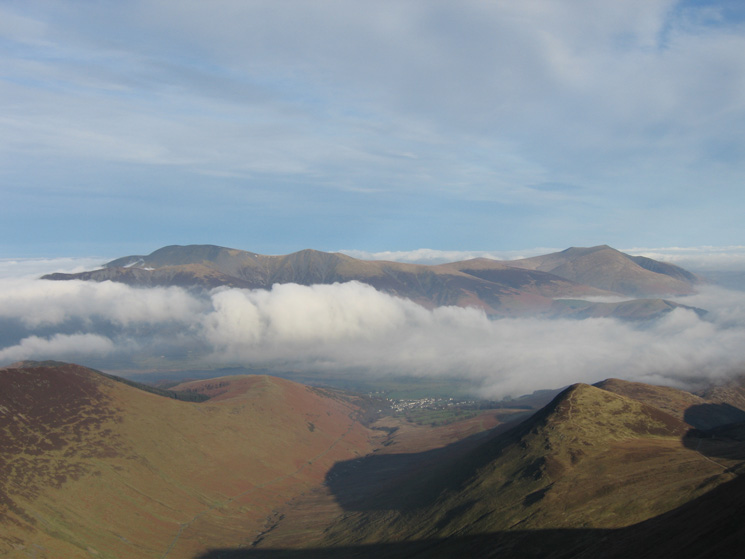 The Vale of Keswick filled with cloud and the Helvellyn range from Kinn