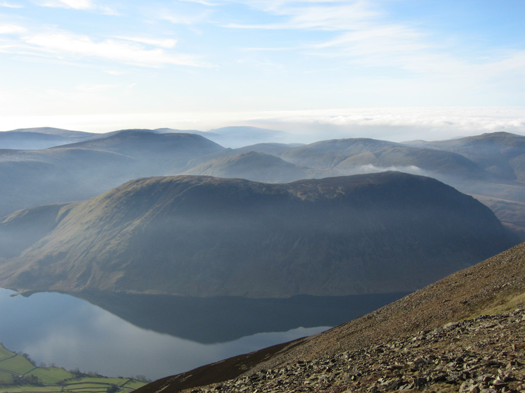 Eel Crag with the Helvellyn range in the distance from Grasmoor