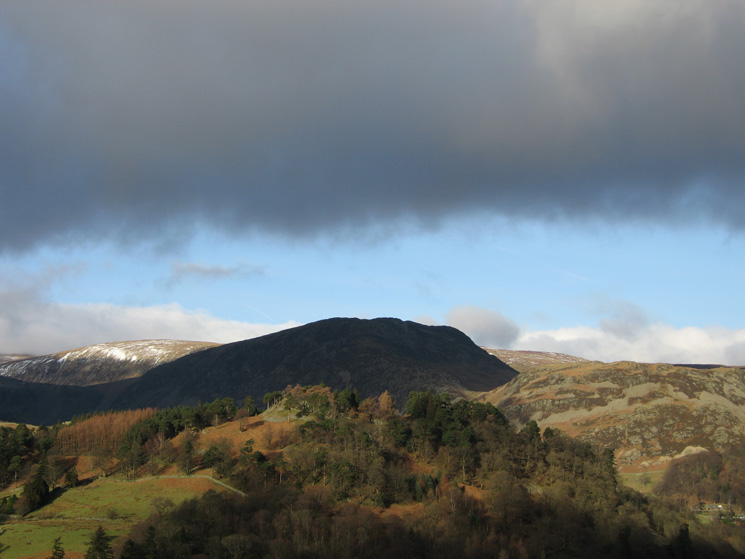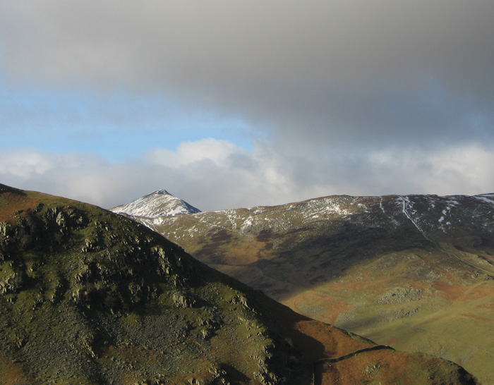 Keldas catches the sun with Sheffield Pike in shadow behind