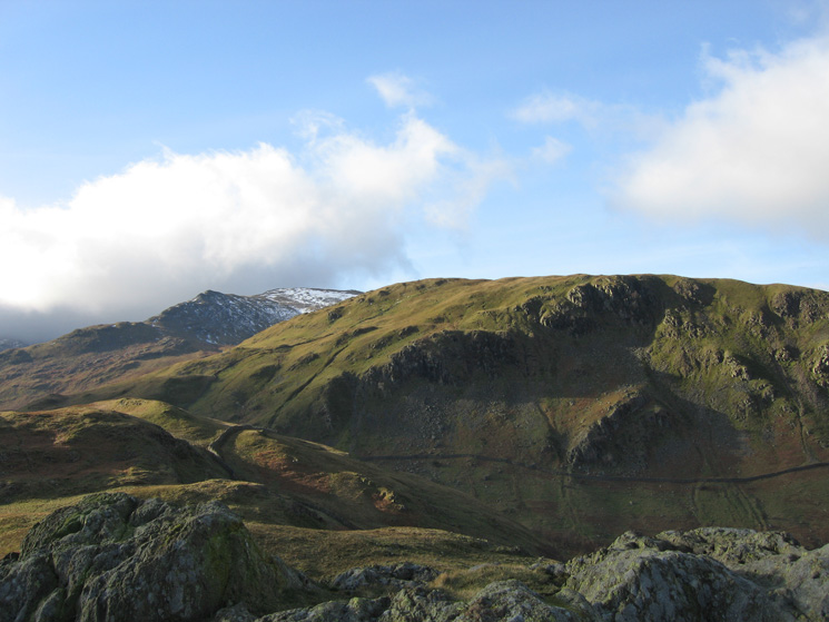 Zooming in on Hartsop Dodd, Gray Crag and High Street from Gavel Pike