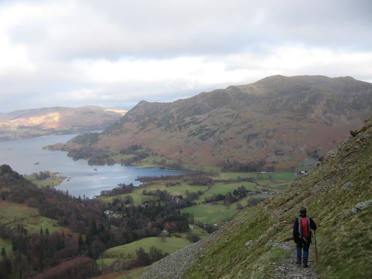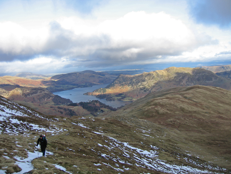 Ascending Saint Sunday Crag from Birks (right) with Ullswater and Place Fell behind