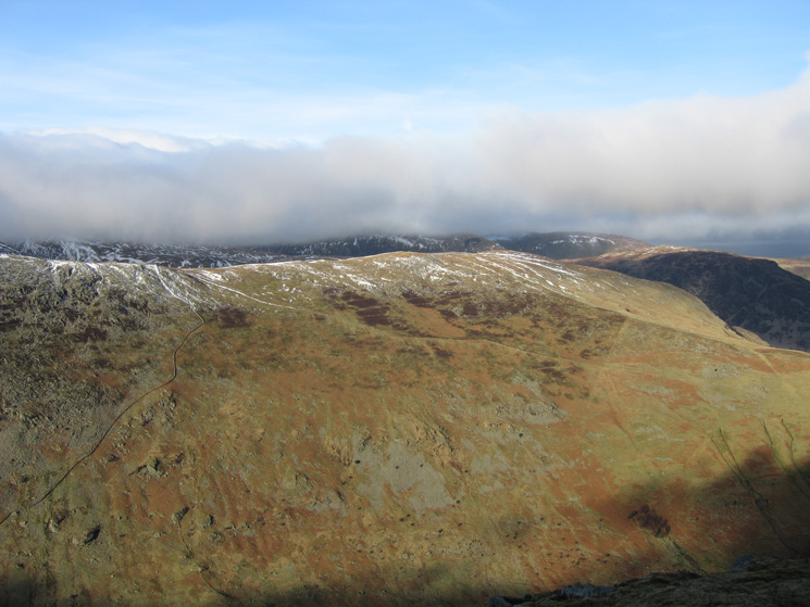 Looking back to Gavel Pike with the far eastern fells behind from our route to Saint Sunday Crag's summit