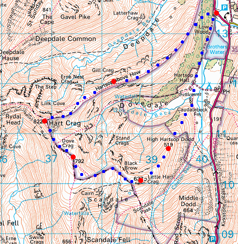 Route: Cow Bridge - Brothers Water - Hartsop Hall - High Hartsop Dodd - Little Hart Crag - Dove Crag - Hart Crag - Hartsop Above How - Cow Bridge