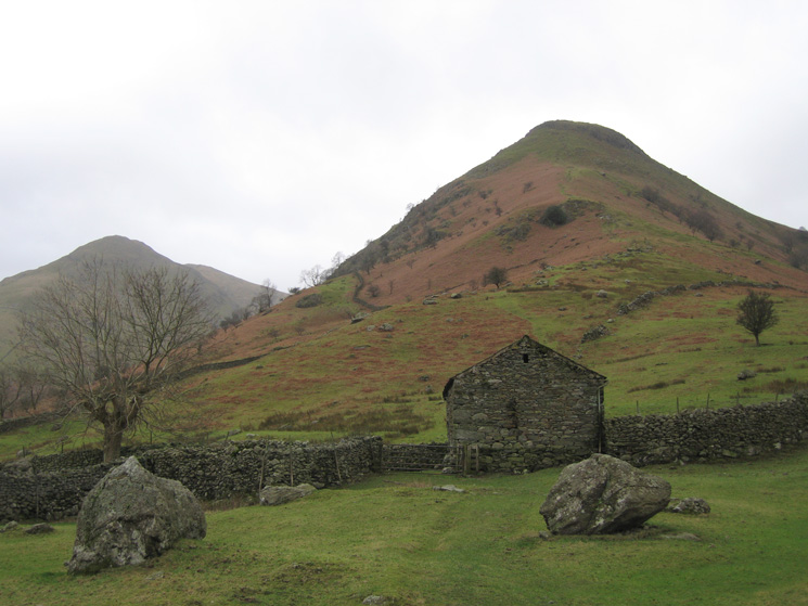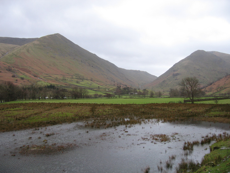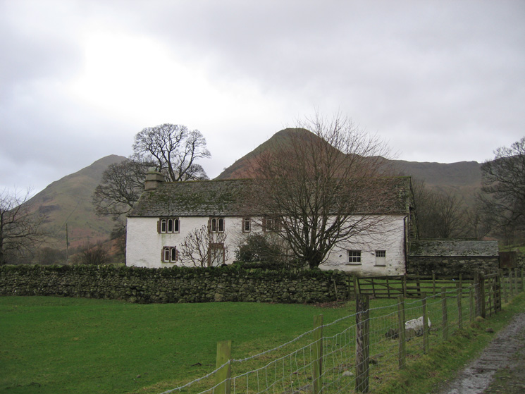 Hartsop Hall with High Hartsop Dodd directly behind and Middle Dodd on the left