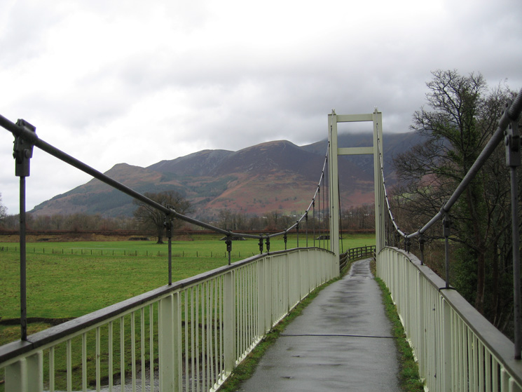 The Skiddaw Fells from the Portinscale suspension bridge over the River Derwent