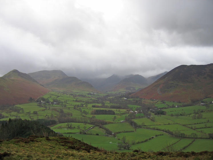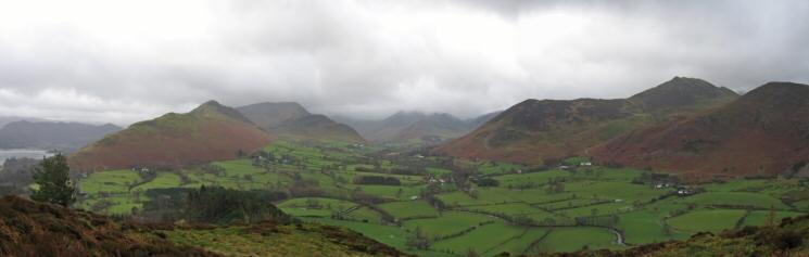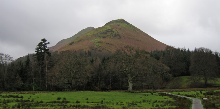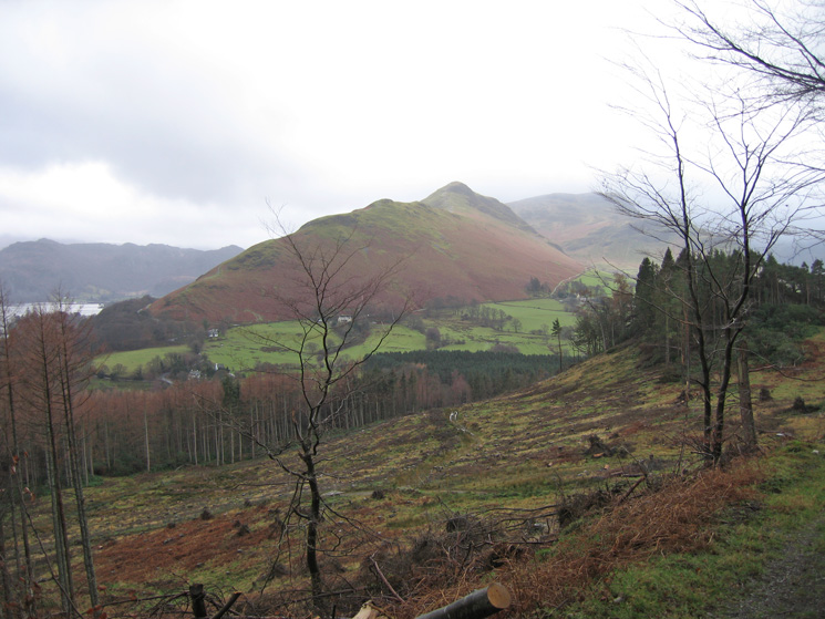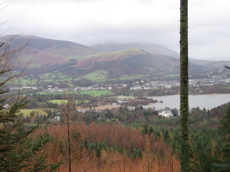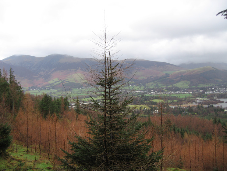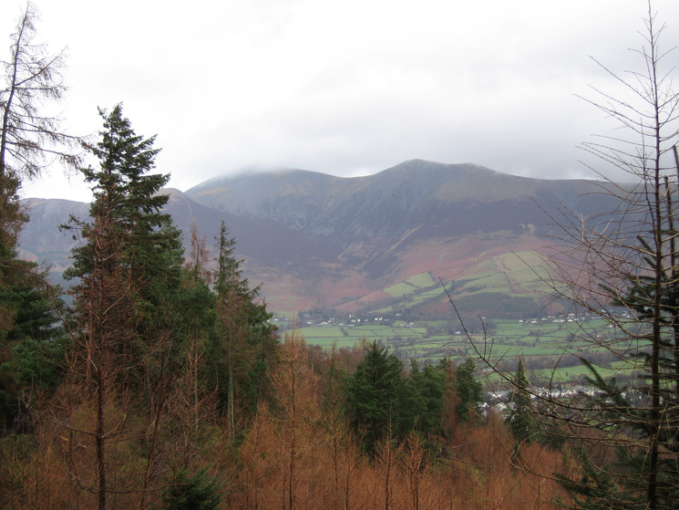The Skiddaw Fells and Keswick from the ascent through the trees of Swinside