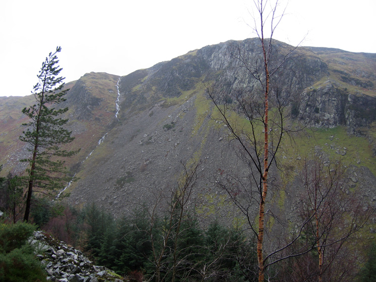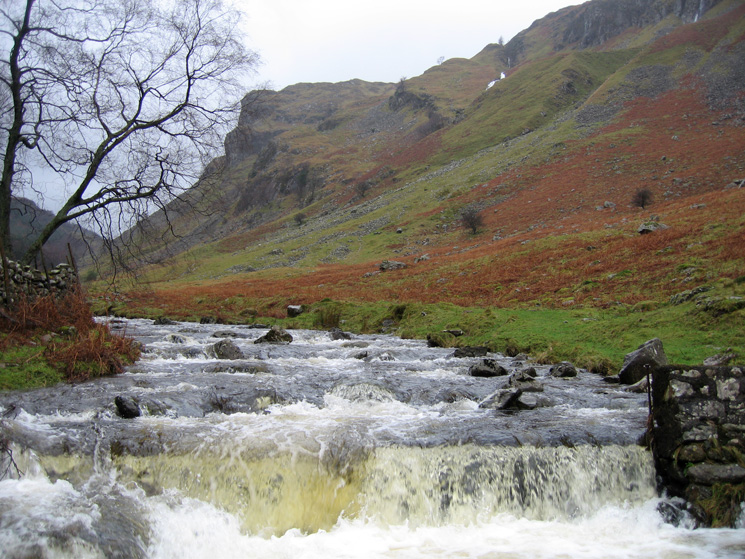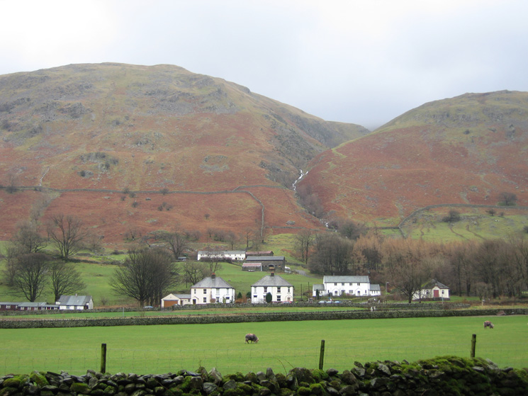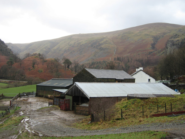 Stanah with Stanah Gill behind. The Sticks Pass path can be seen on the right of the gill