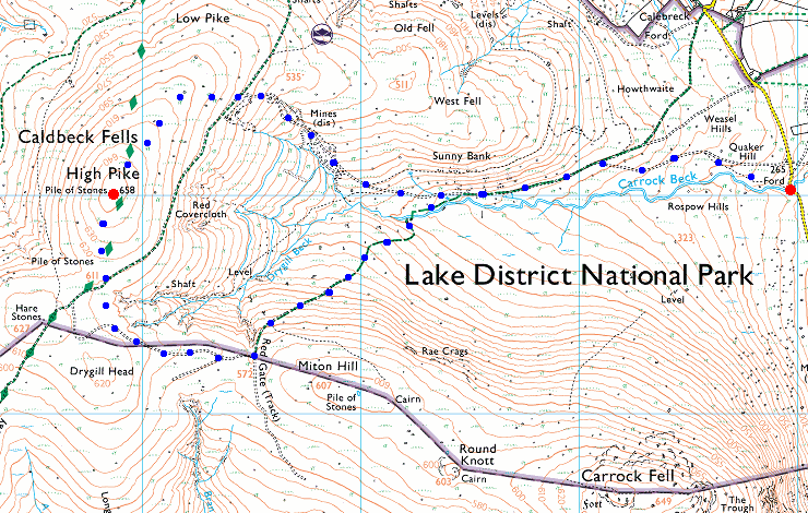Route: Carrock Beck Ford - Carrock Beck - Driggith Mine - High Pike - Red Gate - Carrock Beck - Carrock Beck Ford