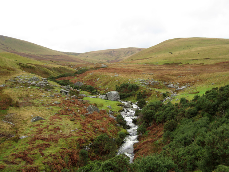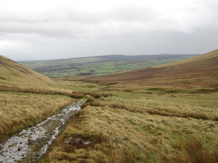 Looking up the valley of Carrock Beck to High Pike with the slopes of Carrock Fell on the left and West Fell on the right
