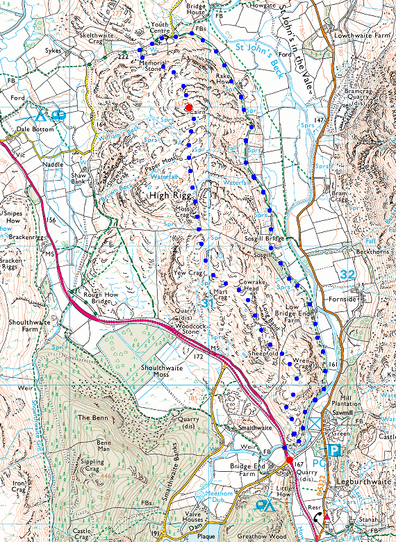 Route: Legburthwaite - Wren Crag - High Rigg - St John's in the Vale Church - St John's in the Vale - Low Bridge End Farm - Legburthwaite