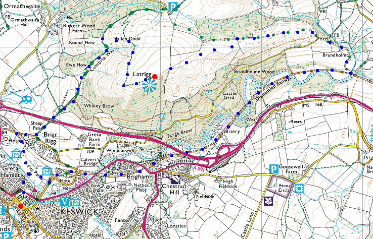 Route: Moot Hall, Keswick - Latrigg - Brundholme - Keswick Railway footpath - Moot Hall
