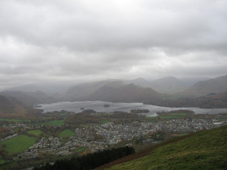 Overcast. Very windy, I was getting blown around on Latrigg's summit, rain showers started as I headed back along the railway footpath.