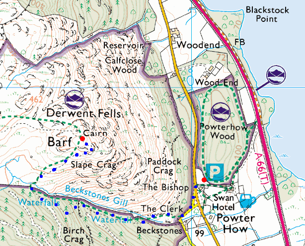 Route: Thornthwaite - Beckstones Gill path - Barf - Beckstones Gill path - Thornthwaite
