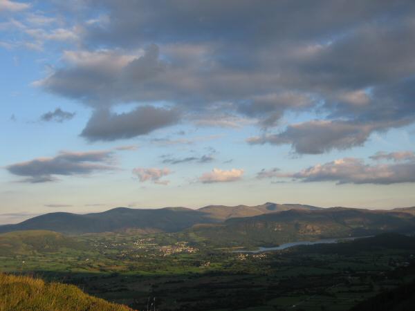 Keswick, Derwent Water and the Helvellyn ridge from Barf