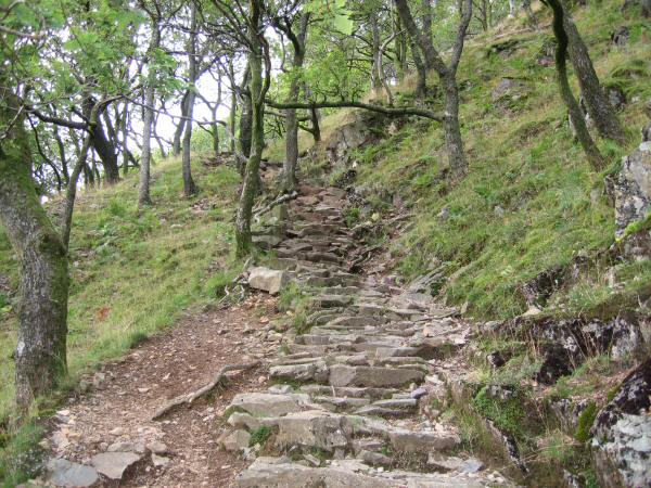The steep pitched path up out of Stonethwaite up to Lingy End