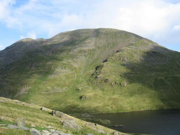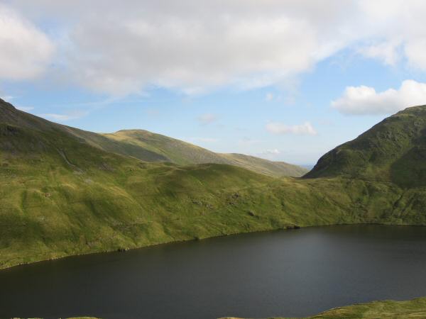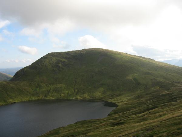 Looking across Grisedale Tarn to Great Rigg and Grisedale Hause