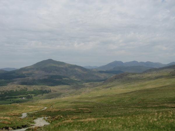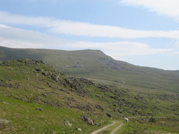 Heading up the Walna Scar Road with Green Crag and Crook Crag on the skyline