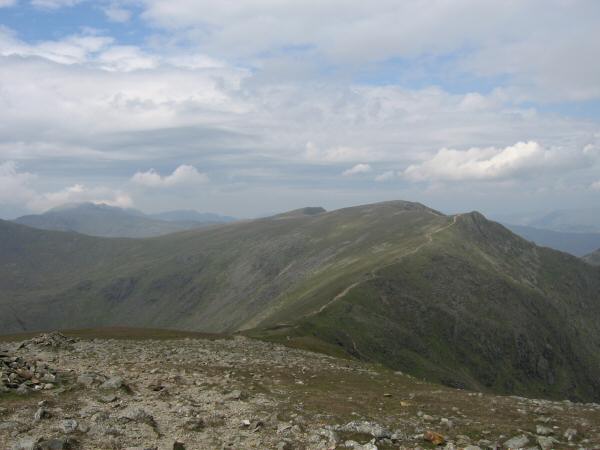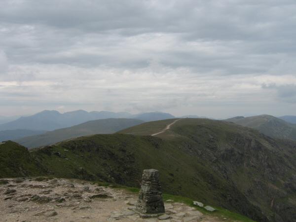 Brim Fell from Coniston Old Man's summit with the Scafells in the distance
