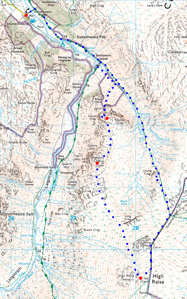 Route: Stonethwaite - Eagle Crag - Sergeant's Crag - High Raise - Low White Stones - Greenup Edge - Greenup Gill - Stonethwaite