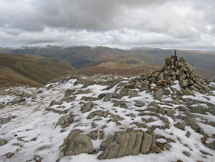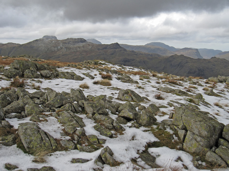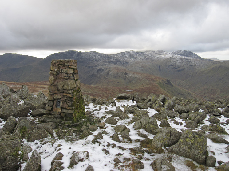 Bowfell, Esk Pike, Ill Crag and Great End from High Raise's summit trig point