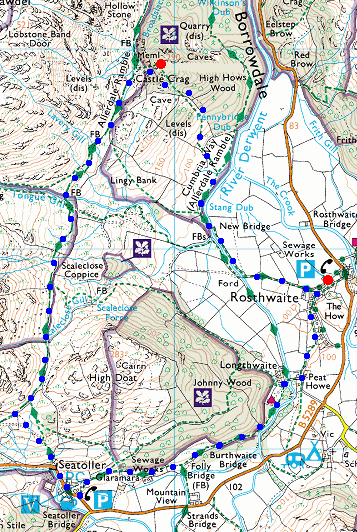 Route: Rosthwaite - Castle Crag - Allerdale Ramble - Seatoller - River Derwent - Longthwaite - Rosthwaite