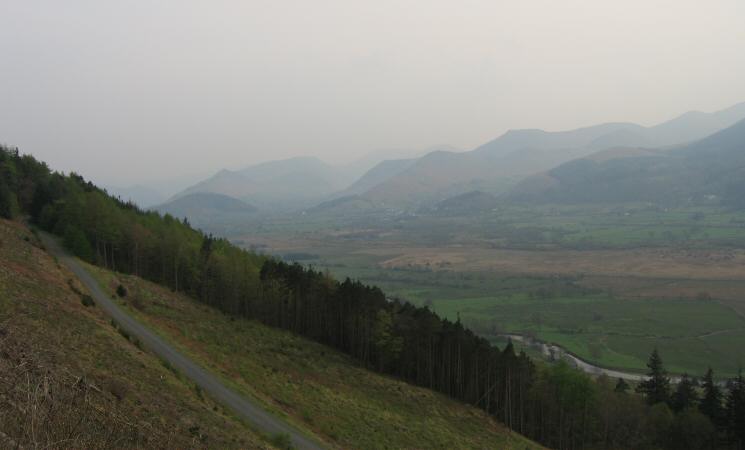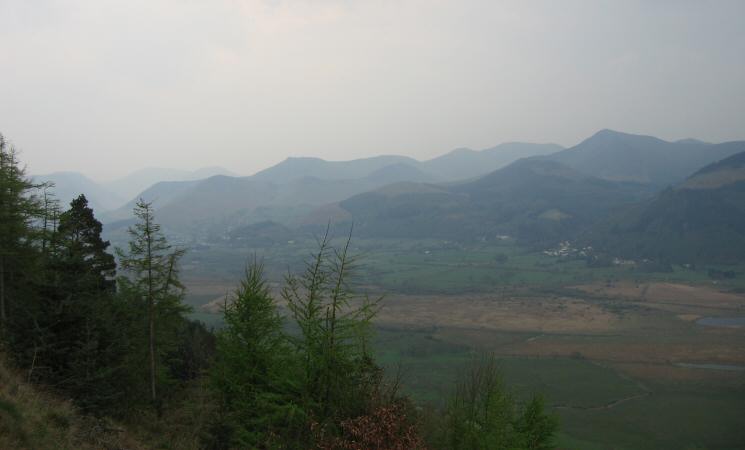 Looking across the head of Bassenthwaite Lake to Whinlatter Forest and Barf