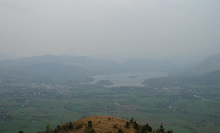 Looking south to Derwent Water with the town of Keswick on the left and the village of Portinscale on the right
