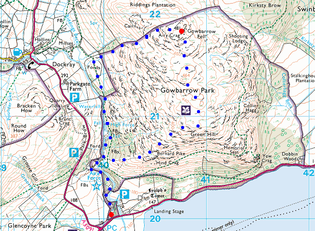 Route: Aira Force bottom carpark - Aira Force - Aira Beck - High Force - Gowbarrow Fell - Gowbarrow Park - Green Hill - Aira Force - carpark