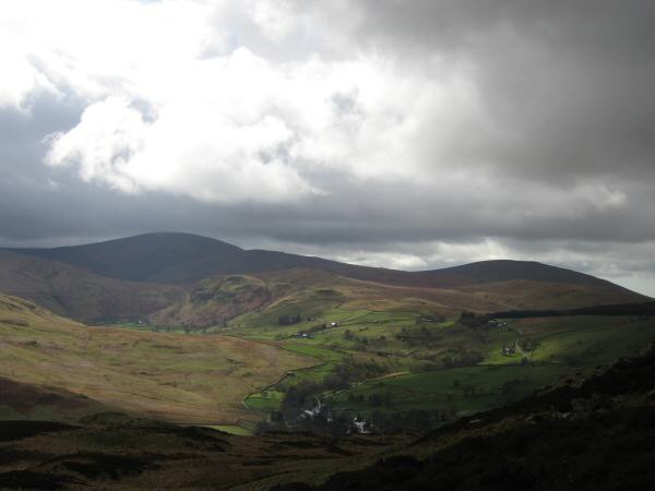 Looking over the village of Dockray to Great Dodd and Clough Head