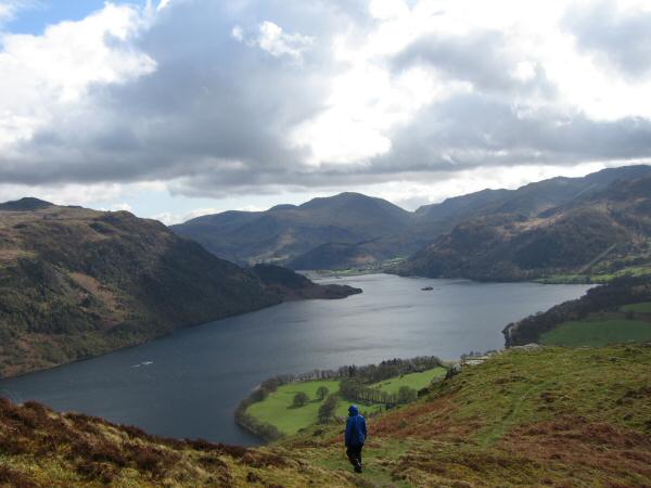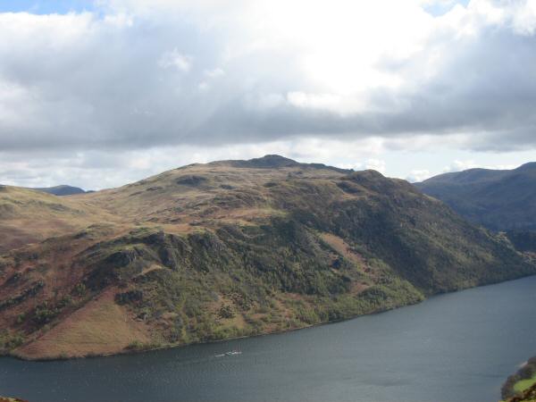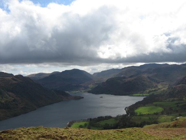 Looking across Ullswater from Gowbarrow Fell to the north end of the High Street ridge and Place Fell