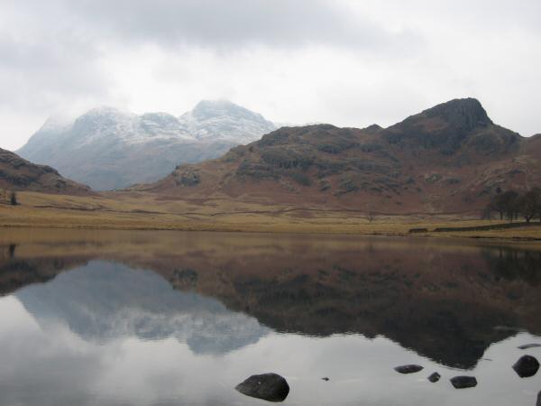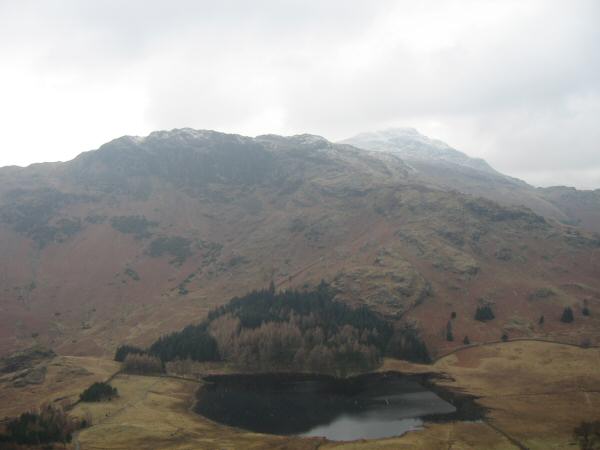 Looking over Blea Tarn to Blake Rigg with some snow on Pike o' Blisco behind