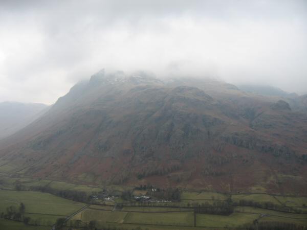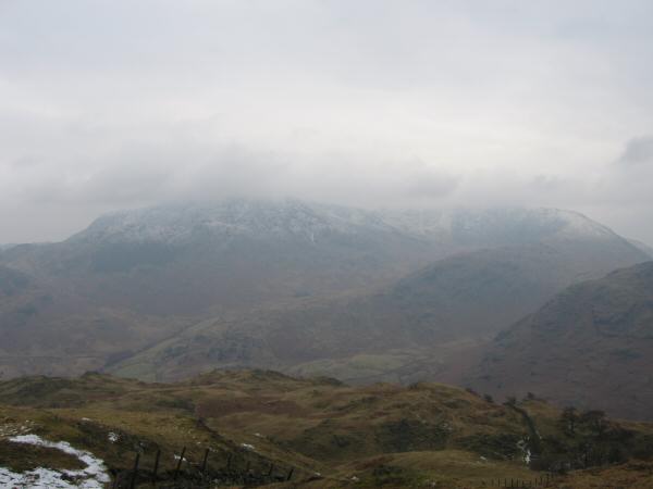 Wetherlam and Great Carrs with their tops in cloud from Lingmoor Fell