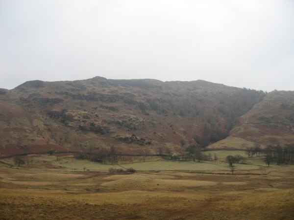 Lingmoor Fell, the path I had ascended is to the right of the tree filled ravine