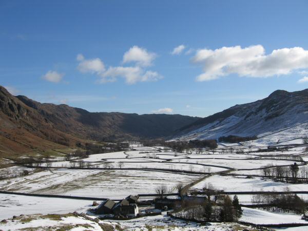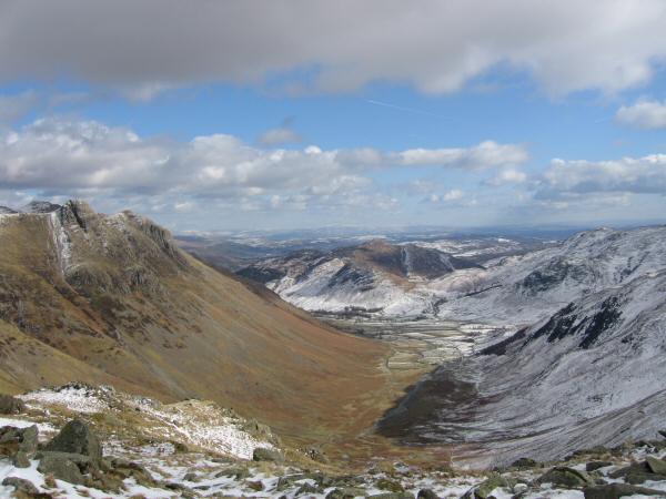 Mickleden with Rossett Pike at its head and Pike O' Stickle on the right