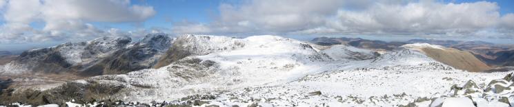 Scafell, Scafell Pike, Ill Crag, Great End, Esk Pike, Grasmoor Fells, Allen Crags and Glaramara from Bowfell's summit