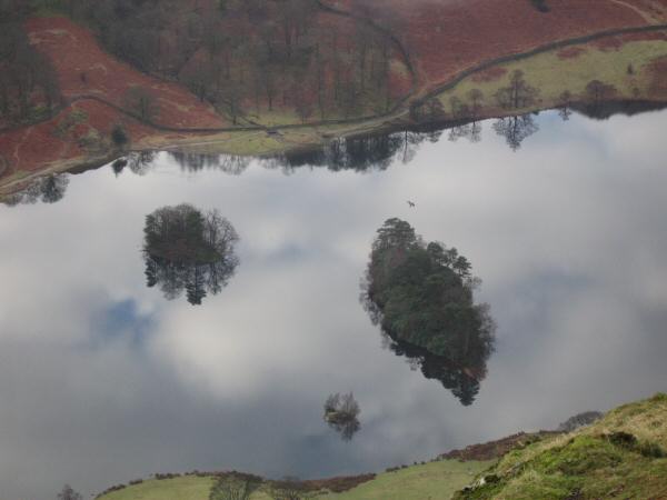 Looking down on Rydal Water's islands from our ascent of Nab Scar