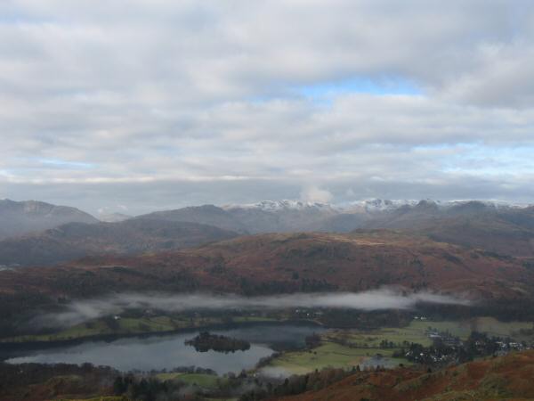 Looking over Grasmere to the Langdale fells from Nab Scar's summit