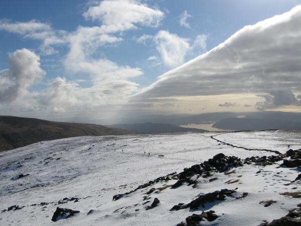 Looking back to Great Rigg from our route up Fairfield with Windermere on the left and Coniston Water on the right