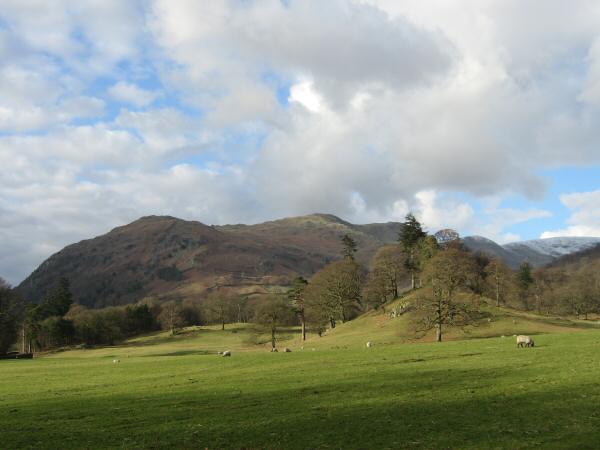 Nab Scar, the twin tops of Heron Pike and Great Rigg from Nook End Farm