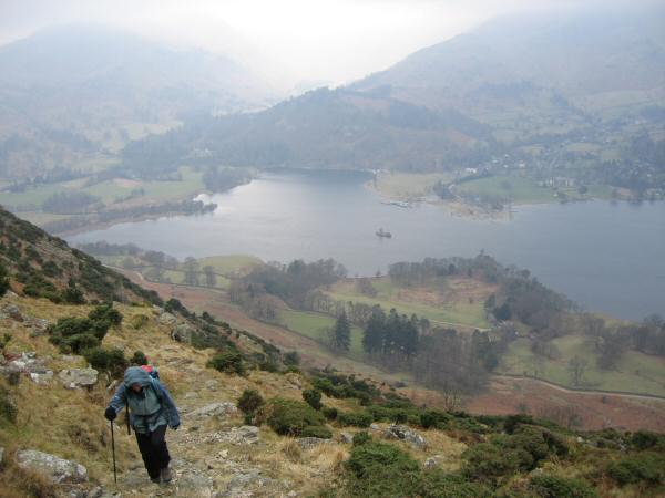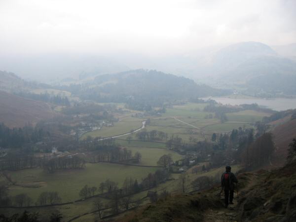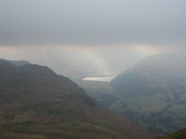 Bitterly cold in a strong wind, cloud covering the fell tops