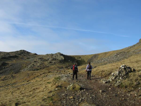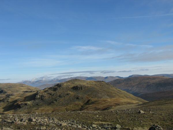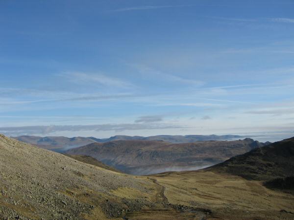 Looking back to Esk Hause with High Raise behind and the Fairfield fells on the skyline